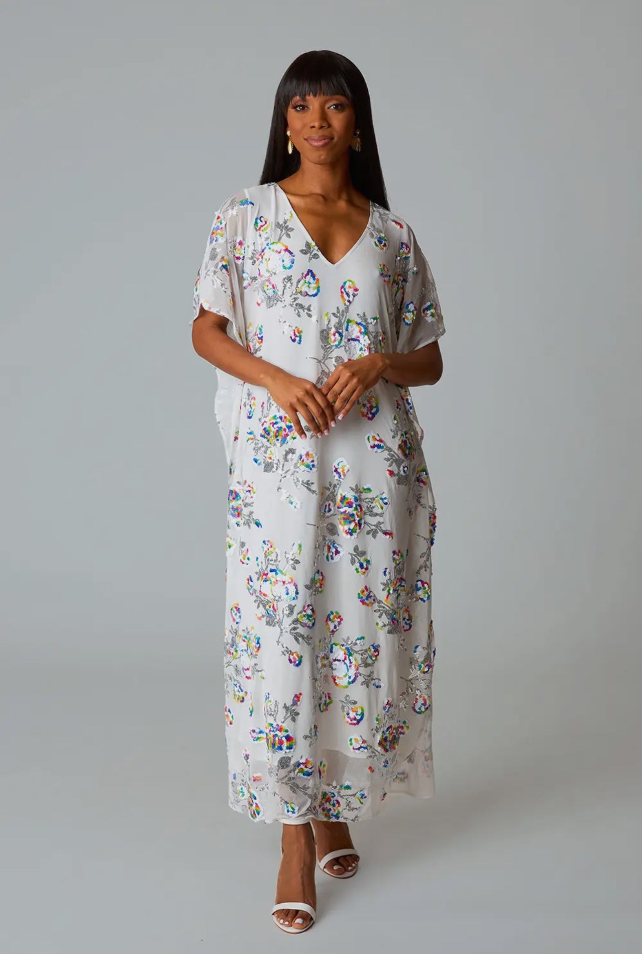 Timeless Style in our gorgeous Atlas Caftan White Sangria Dress