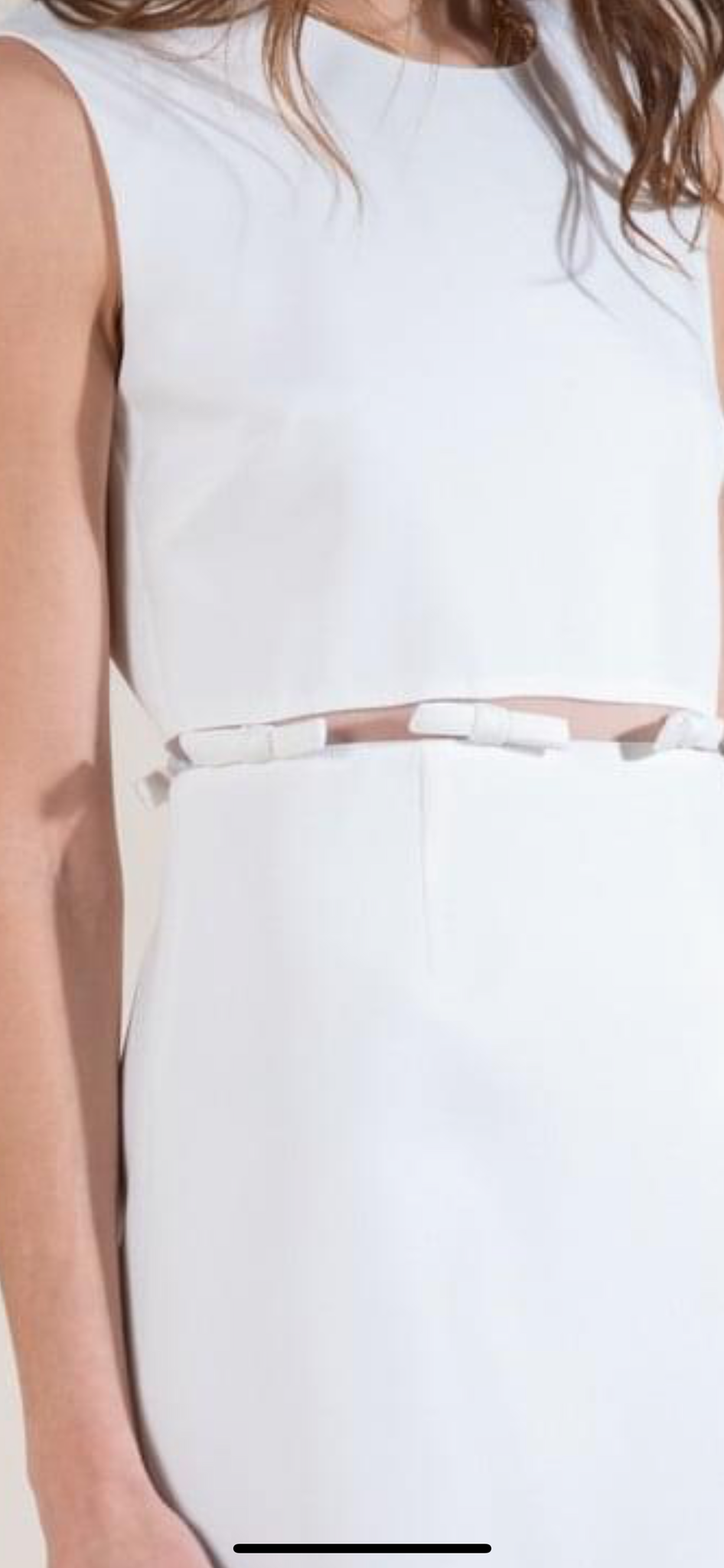 Double lined white dress with thin sheer mesh waist with dainty bow details adds an elegant touch to any special occasion.Perfect for Bridal Showers, Graduation, Pageants and Summer Social Occasions